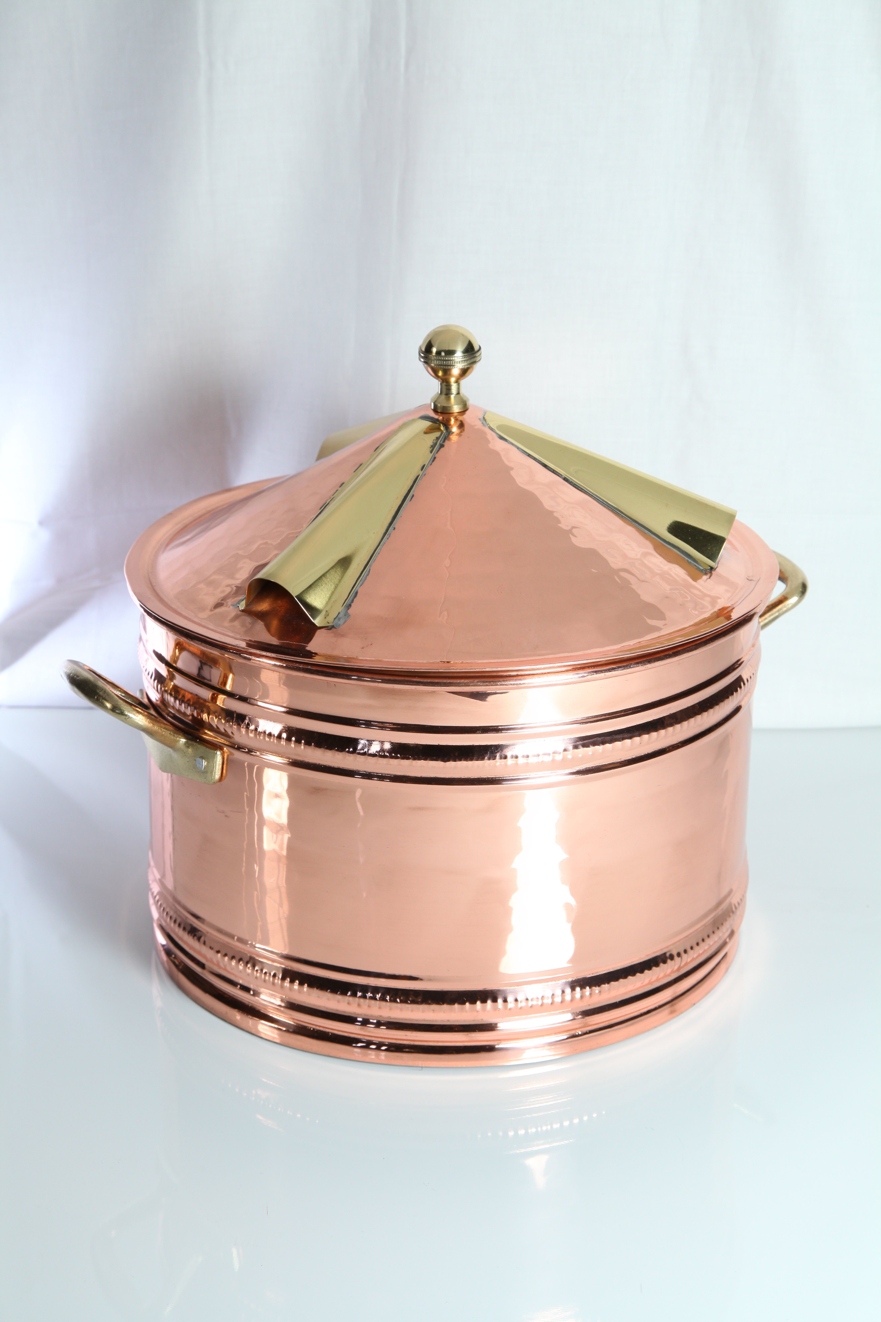 Stufetta/Portapizze in rame e ottone, un classico dell'antica tradizione napoletana realizzata a mano da sapienti artigiani che tramandano la loro arte da oltre un secolo.